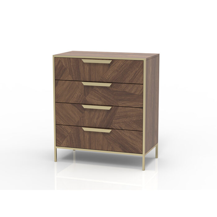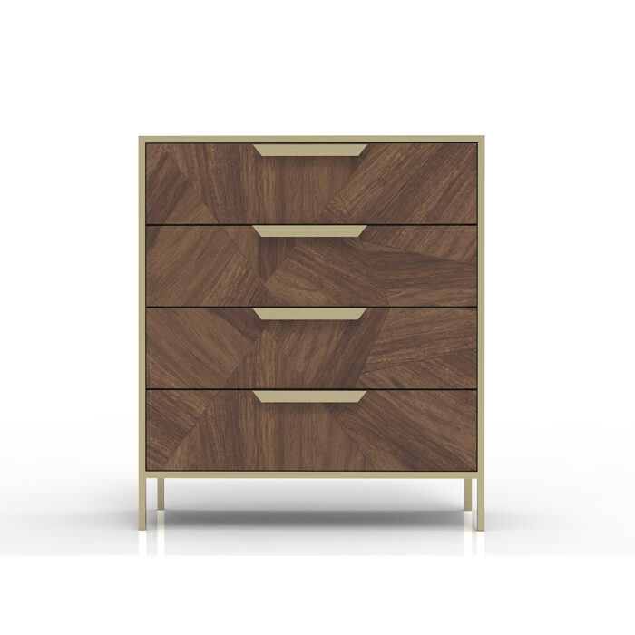 Introducing the Brown Topaz Four-Drawer Cabinet: a refined fusion of solid wood with veneered patterns. Each drawer operates smoothly on telescopic channels, ensuring durability and ease of use. The veneered patterns add an elegant touch, complementing the cabinet’s design. Offering both style and functionality, it’s perfect for organized storage. With its refined materials and timeless design, the Brown Topaz Four-Drawer Cabinet is a sophisticated addition to any room.