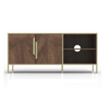 Introducing the Brown Topaz Media Unit: a sophisticated blend of solid wood with veneered patterns. Its two doors feature high-quality hinges, ensuring smooth operation and durability. The veneered patterns add a touch of elegance, complementing the unit’s design. Offering both style and functionality, it’s perfect for storage and display. With its refined materials and timeless design, the Brown Topaz Media Unit is a stylish addition to any living space.