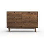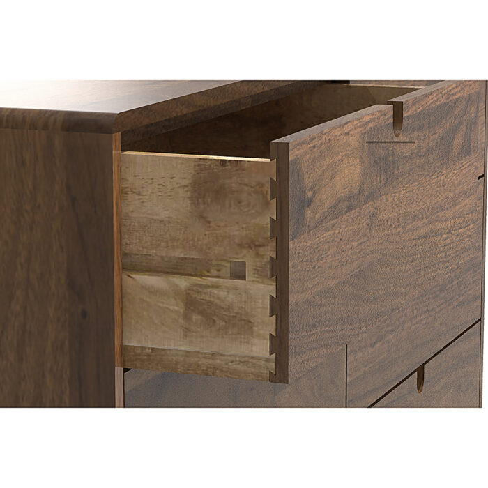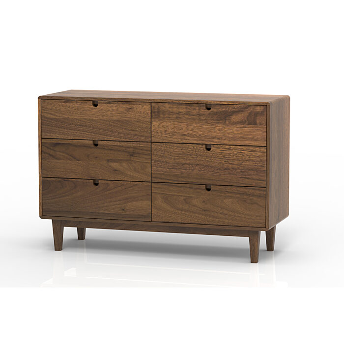 Introducing the Denia Six-Drawer Cabinet: a minimalistic design crafted from solid wood with notch-cut drawer pulls. Each drawer features dove-tail construction, ensuring durability and timeless appeal. High-quality telescopic channels allow for smooth operation and easy access. Combining functionality with style, it offers ample storage while maintaining a sleek aesthetic. With its sturdy construction and attention to detail, the Denia Six-Drawer Cabinet is designed to meet your storage needs while adding a touch of elegance to any space.