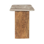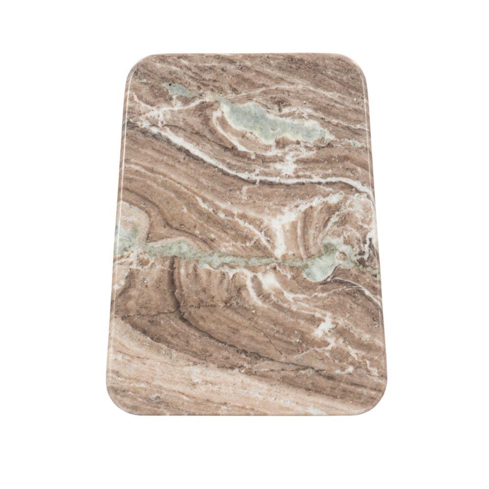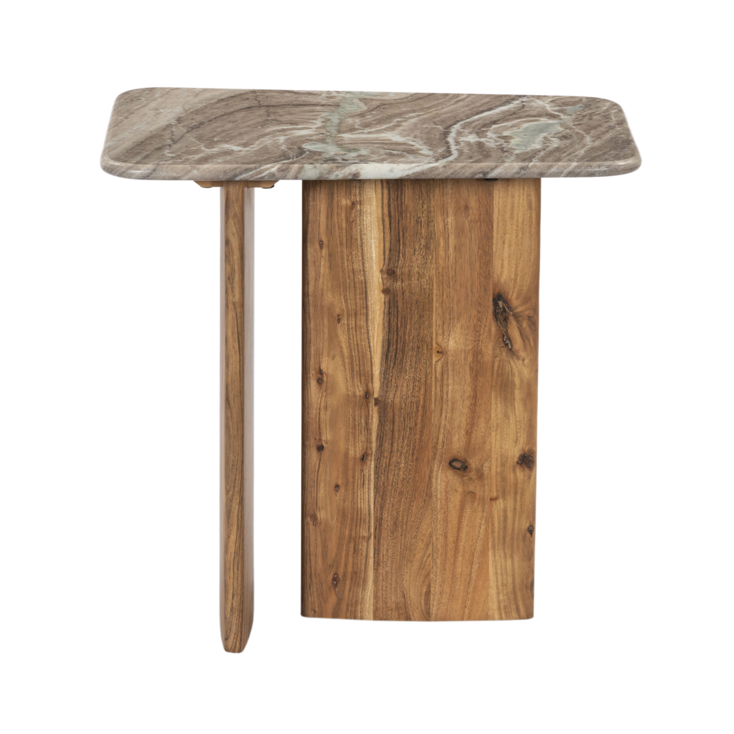 This side table combines the elegance of red onyx marble with the warmth of acacia wood. The tabletop, crafted from richly veined red onyx, offers a luxurious surface with unique natural patterns, ensuring each piece is truly one-of-a-kind. The translucent quality of the onyx adds depth and visual interest, catching the light beautifully. Acacia wooden legs, showcasing a distinct grain pattern that complements the organic feel of the marble. The warm tones of the acacia create a pleasing contrast with the polished stone. This side table is the perfect accent piece for any living space, offering a touch of sophistication and natural beauty. Its compact size makes it ideal for use beside a sofa, armchair, or bed.